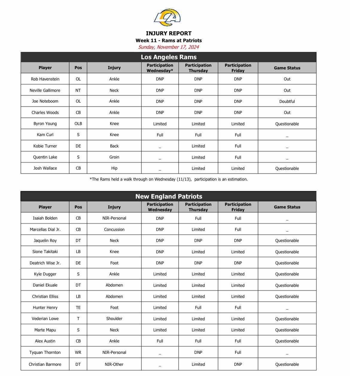 Injury Report